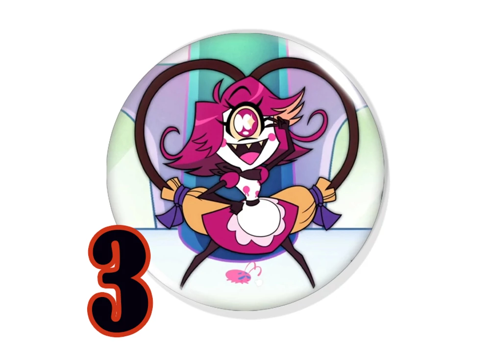 Niffty és Baxter egy Hazbin Hotel rajongó táskájáról sem hiányozhat! Tökéletes választás kabátra, táskára vagy ajándékba.